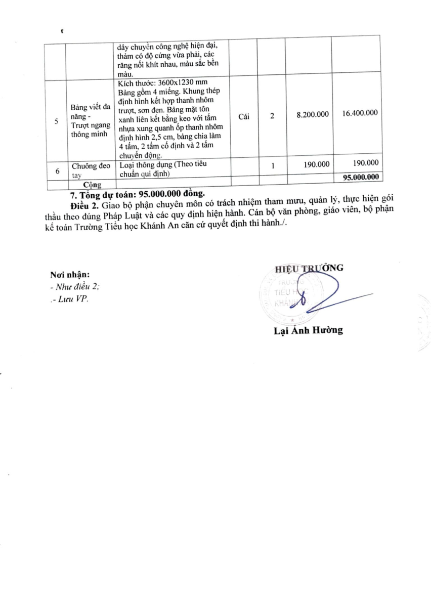 n gói thầu mua sắm tài sản, trang thiết bị dạy học cho trường tiểu học Khánh An
