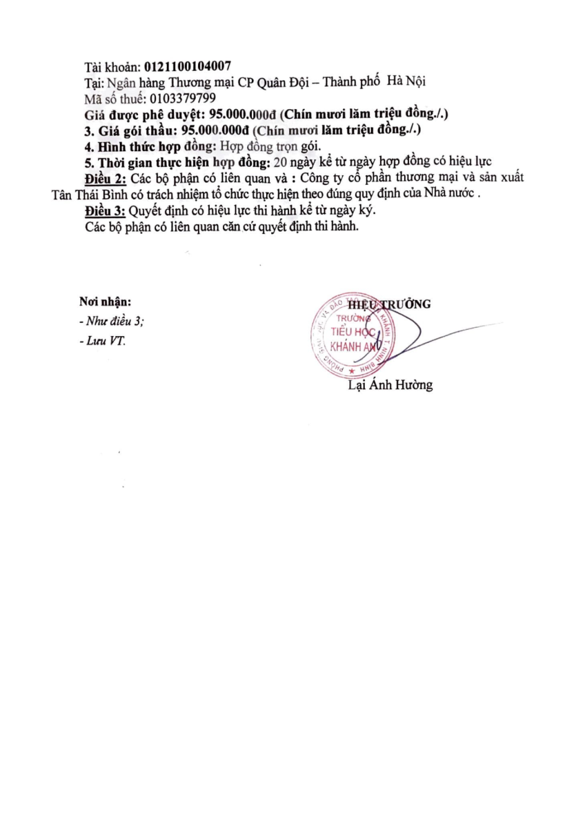 Quyết định chỉ định gói thầu: Mua sắm Tài sản, trang thiết bị dạy năm 2023 cho trường tiểu học Khánh An