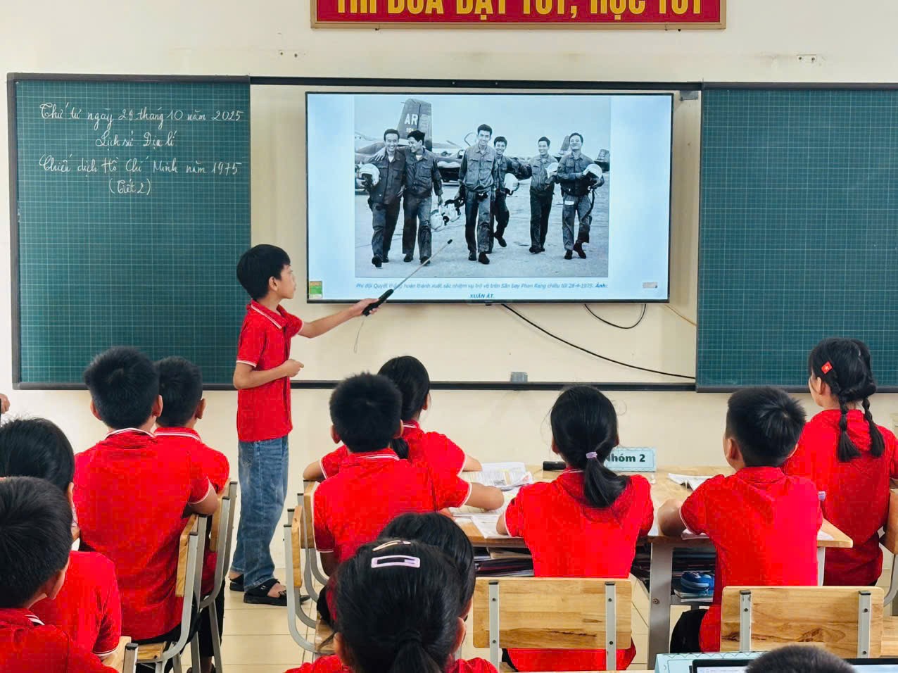 Tiết học không chỉ tái hiện khí thế hào hùng của ngày toàn thắng, mà còn lồng ghép hiệu quả giáo dục quốc phòng – an ninh, giúp học sinh nhận thức sâu sắc về trách nhiệm bảo vệ Tổ quốc, trân trọng hòa bình hôm nay.