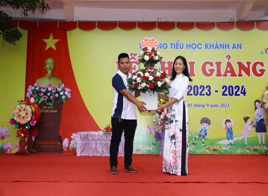 Về dự lễ khai giảng năm học 2023-2024 với trường tiểu học Khánh An, có các ông bà đại diện Đảng ủy, HĐND, UBND, UBMTTQ, các ban ngành đoàn thể xã Khánh An, các bậc cha mẹ học sinh cùng đông đủ cán bộ, giáo viên, học sinh toàn trường.